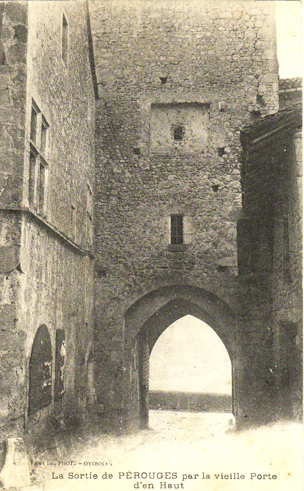 La sortie de Pérouges dans la Dombes par la vieille Porte d'en haut en 1915